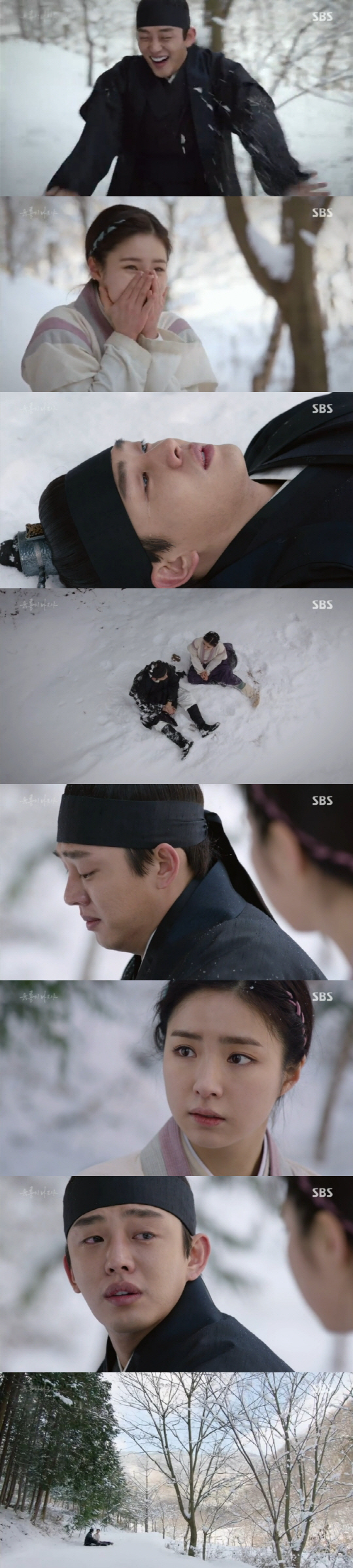 이처럼 거침없는 행보를 이어가던 방원에게도 쉬이 해결할 수 없는 문제가 있었으니, 바로 사랑하는 여인 분이(신세경)였다. 그는 유일한 내 편이자 평생 지켜주고 싶은 사랑 분이 앞에서는 언제나 무장해제된 해맑은 소년의 모습을 보였던 터. 이번 데이트에서 역시 아이처럼 눈밭을 뒹굴며 분이와 소중한 시간을 보낸 방원은 이내 뜨거운 눈물로 두 남녀의 이별을 예고, 안방극장 시청자들의 마음을 울린 가슴 아픈 명장면을 탄생시켰다.