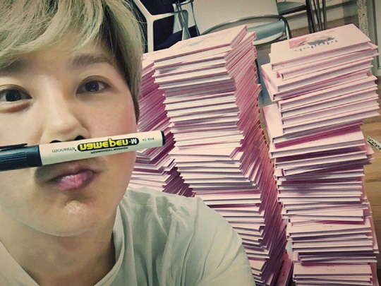 또한 신혜성은 "컴백 방송 첫 째 주라서 정신 없긴 하지만 짬짬이 시간 내서 얼른 사인하고 보내드릴게요~ 약속은 반드시 지킵시다~"라는 글과 함께 수북이 쌓인 'delight' 앨범을 배경으로 깜찍한 매력의 셀카 사진을 공개해 눈길을 끌고 있다.
