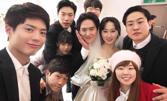공개한 사진에는 극중 고경표, 류혜영의 결혼식에 모인 '응답하라 1988' 친구들의 모습이 담겨 있다. 제각기 개성을 자랑하는 쌍문동 친구들의 훈훈한 우정이 돋보인다.