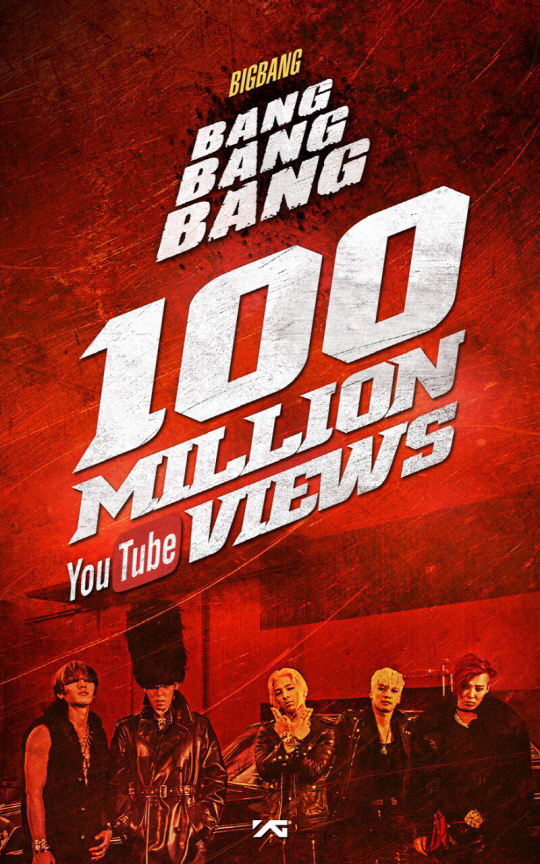 빅뱅의 '뱅뱅뱅' 뮤직비디오가 유튜브 조회수 1억뷰를 돌파했다. 이는 같은 날 오전 1억뷰를 돌파한 싸이의 'DADDY' 뮤직비디오와 나란히 세운 기록이라 의미를 더한다.