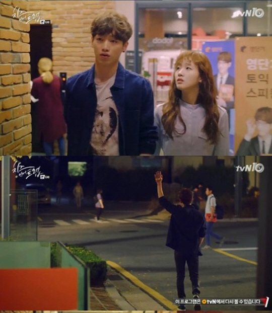 19일 방송된 tvN 월화드라마 '치즈인더트랩'에서는 홍설(김고은) 앞에 나타난 스토커 오영곤(지윤호)을 도와주는 백인호(서강준)의 모습이 그려졌다.