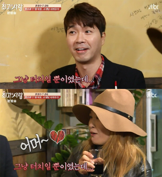19일 방송된 JTBC 예능 '님과 함께 시즌2-최고의 사랑'에서는 가상부부 김숙 윤정수가 황석정에게 박수홍을 소개시켜주는 모습이 전파를 탔다.