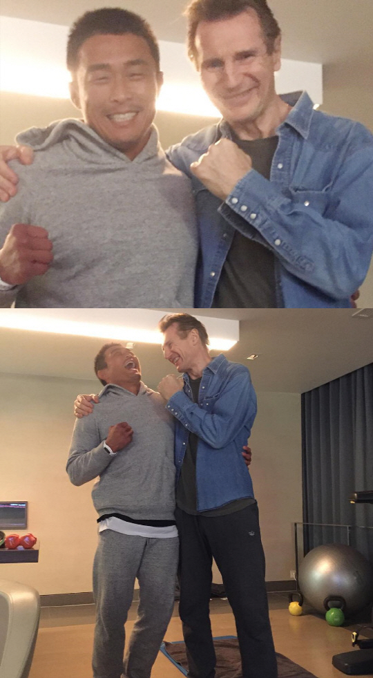 [스포츠조선닷컴 정안지 기자] 이종격투기 선수 추성훈이 할리우드 배우 리암니슨과의 인증샷을 공개했다.