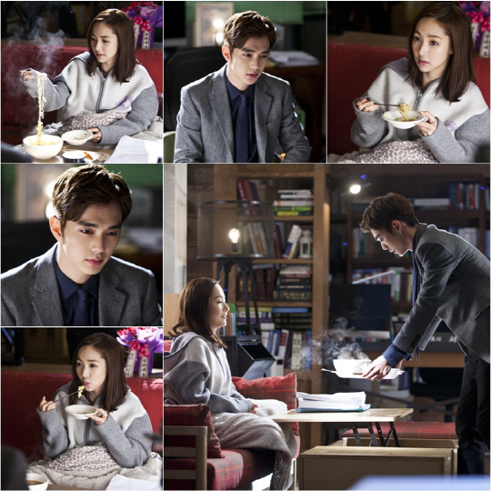 '우아커플'의 '호로록~라면 데이트' 장면은 지난 18일 경기도 파주시 탄현면에 위치한 프리즘 세트장에서 진행됐다. 유승호와 박민영은 오전 2시에 촬영을 시작, 한 차례 NG없이 완벽 OK 사인을 받았다. 라면의 생명인 모락모락 나는 김을 사수하기 위해 라면을 끓이자마자 바로 촬영에 돌입한 상황. 이어 박민영은 "라면 맛있게 잘 끓였다"라고 감탄하며 군침유발 '라면 먹방'을 선보였다. 뿐만 아니라 촬영을 거듭할수록 쫀쫀해지는 케미를 발산하고 있는 유승호와 박민영의 모습에 스태프들은 "정말 잘 어울린다"라고 감탄을 금치 못했다.