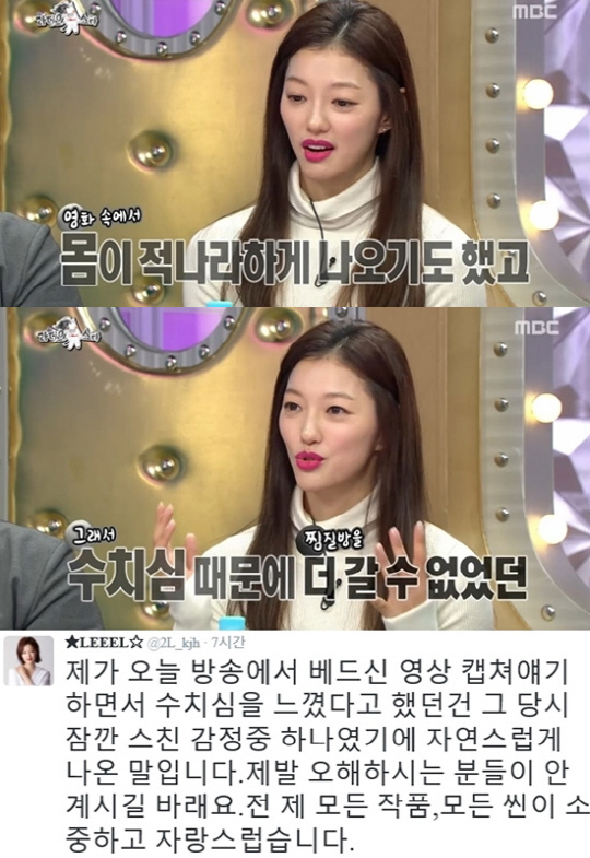 [스포츠조선닷컴 정안지 기자]'라디오스타' 이엘이 영화 '황해'의 베드신 발언에 대해 해명했다.