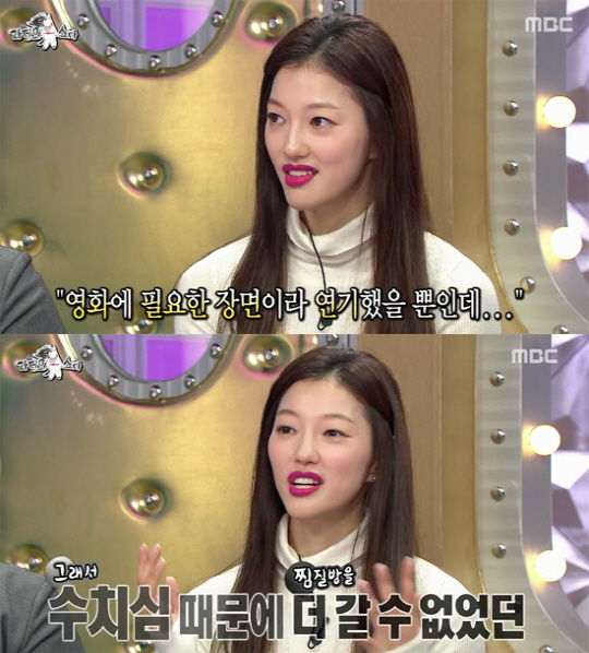 이날 MC 규현은 이엘에게 "첫 베드신이 영화 '황해'였다. 이걸 찍고 찜질방도 잘 못 갔다고 하던데"라는 질문을 던졌다.
