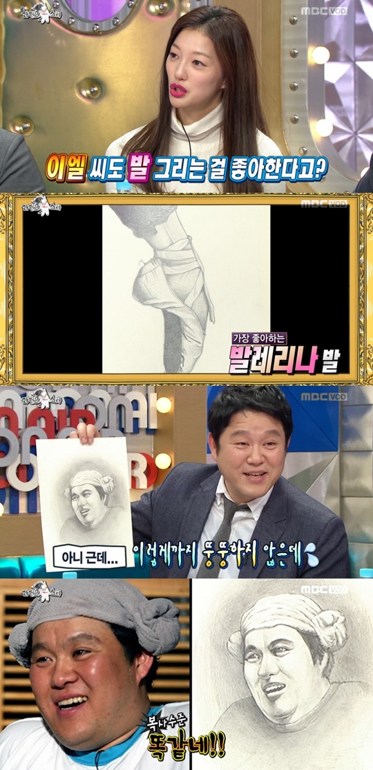 '라디오스타' 배우 이엘이 직접 그린 그림을 '이상형' 김구라에게 선물했다.