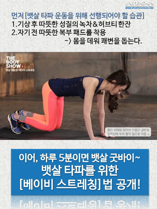 21일 오후 온스타일 '더바디쇼2'에서는 여성들의 최대 고민인 뱃살 타파를 위한 꿀팁들이 공개됐다. 특히 피트니스 모델 양정원이 복부 라인 관리를 위한 네발 기기 스트레칭 팁을 전수해 화제다. '더바디쇼'는 모델 송해나 고소현과 개그우먼 장도연, 트레이너 정아름, 제시카, 양정원 등 스타가 직접 바디를 스타일링해주는 리얼 피트니스 프로그램. 매주 목요일 밤 9시 방송.