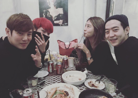 [스포츠조선닷컴 정안지 기자] 가수 환희가 인피니트 성열, 씨스타 보라, 배우 박유환과의 친목 도모 인증샷을 공개했다.