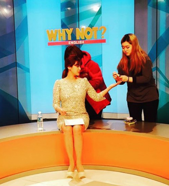 머리를 빗어 넘긴 채 반짝이가 달린 원피스를 입은 앉은 솔비의 아나운서 느낌 물씬 풍기는 자태에 시선이 쏠렸다.
