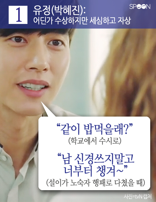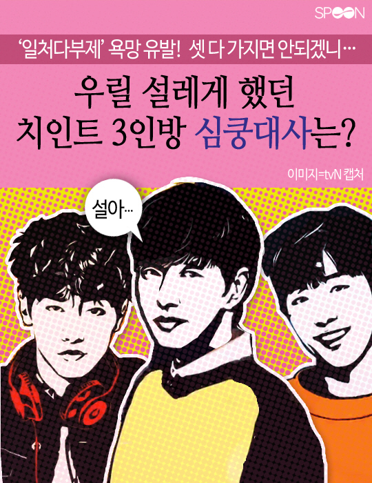 '응팔' 떠난 허전함 메워줄 드라마 중 요즘 대세로 떠오른 tvN 월화극 '치즈인더트랩'. 동명의 인기 웹툰을 원작으로 한 이 작품은 지난 19일 6회 방송이 평균 시청률 6.5%(닐슨코리아, 유료플랫폼, 전국기준)를 기록하며 5회 연속 전채널 동시간대 1위를 기록했습니다. 중국 웨이보에서도 18일 드라마 인기차트 1위, 웨이보 24시간 이슈차트 3위를 기록 하는 등 초반부터 큰 인기를 끌고 있습니다. 수많은 원작 팬덤들 때문에 치어머니(치인트 시어머니)란 말까지 생겨났는데요. 그들의 치맛바람으로 방송 시작 전부터 여주인공이 바뀌는 등 곤욕을 치르기도 했지만 결국 뚜껑을 열어 보니 결과는 대성공이었습니다. 평범한 여대생 홍설과 선배 유정의 이야기를 축으로 전개되는 이 드라마의 또 다른 볼거리는 덫에 걸리고 싶게 만드는 '3인3색 매력남'의 등장입니다. 여성 시청자의 눈을 단번에 하트로 만들어버리는 '치인트' 3인방의 '심쿵 대사'들을 살펴보았습니다.