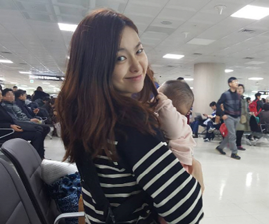 이영은은 22일 자신의 인스타그램에 "제주공항 이제 집갑니다. 아가야 엄마머리 그만 땡겨요"라는 글과 함께 한 장의 사진을 게재했다.