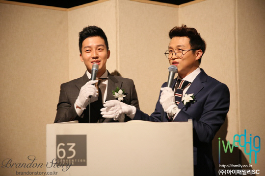 이날 예식은 주례 없는 결혼식으로 진행 돼 의미를 더했다. 오나미와 박지선의 화동으로 식이 시작됐다. 동료 개그맨 허경환과 박성광이 1부 공동사회를, 김대성이 2부 사회를 맡아 화기애애한 분위기를 잘 이끌어냈으며 축가는 가수 간미연, 박원, 그리고 동료 개그맨들의 깜짝 축하 무대로 이어졌다.
