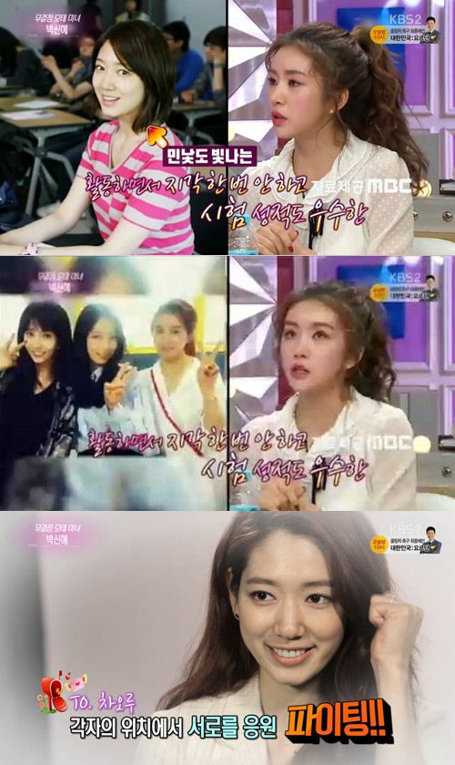 이에 박신혜는 "차오루가 날 롤모델이라고 고백했는데 의외였다. 한 번도 대화를 나눠 본 적이 없다"면서 "멤버 각각마다 굉장히 빛을 발하고 있는데 그 중에서도 으뜸으로 빛을 발해서 대박나길 바란다. 그리고 얼른 학교 졸업하자"고 그를 응원했다.