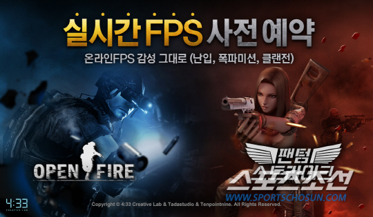 네시삼십삼분은 자사가 서비스 예정인 신작 모바일 FPS '오픈파이어'와 '팬텀스트라이크' 등 2종의 사전예약을 실시한다고 25일 밝혔다.