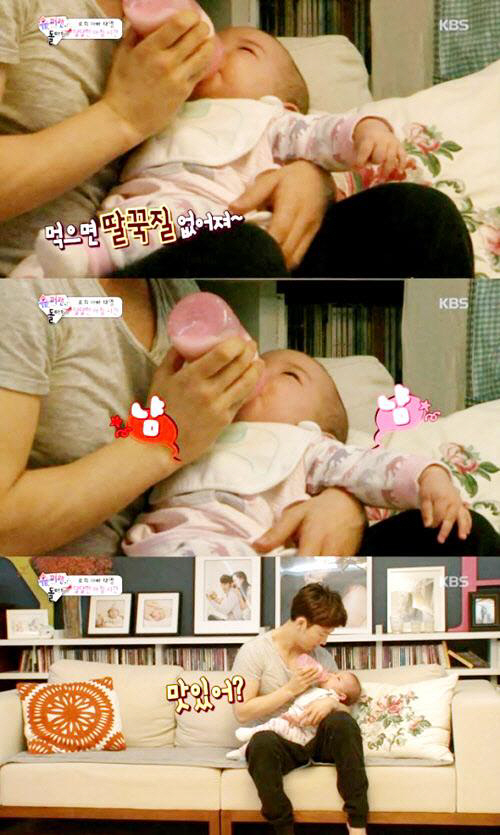이어 딸꾹질을 하는 딸 로희에게 분유를 먹이며 딸꾹질을 해결하는 베테랑 아빠의 모습을 보였다.
