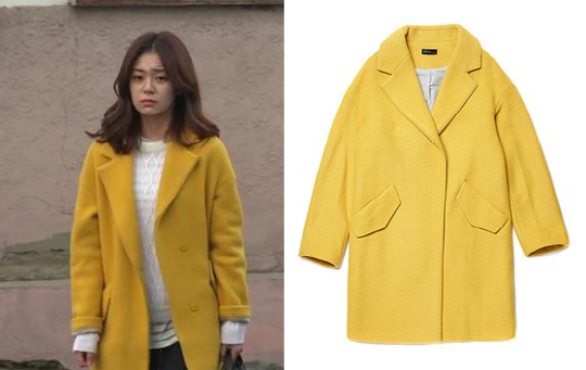 백진희 특유의 귀여운 표정과 작은 체구에서 나오는 앙증맞은 느낌을 한층 돋보이게 한 옐로우 코트. 독특한 짜임의 니트와 스트라이프 티셔츠를 레이어드해 캐주얼하고 스포티한 느낌을 완성했다.