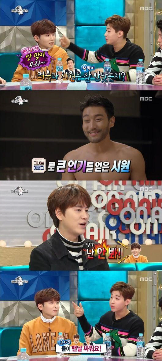 려욱은 이날 앞서 최시원이 '라디오스타'를 통해 려욱과의 에피소드를 언급한 것에 대해 "나랑 안 맞는다"라고 말했다.