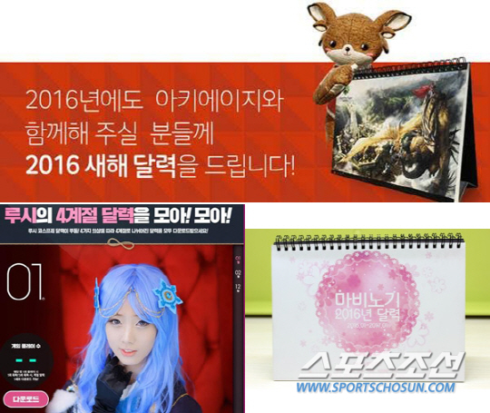 엑스엘게임즈의 '아키에이지'도 달력 이벤트를 진행 중이다. 2016년 1월 13일 점검 이후 신규계정을 생성해 30레벨 이상의 캐릭터를 보유하거나 시간마다 획득할 수 있는 반짝이는 시간의 증표 50개 이상을 모으면 달력 응모자격이 주어진다. 복귀계정 유저의 경우 이벤트 기간 1월13일 점검 후부터 1월 27일 점검 전까지 7일 이상 접속하면 2016년 아키에이지 달력 이벤트에 응모할 수 있다.
