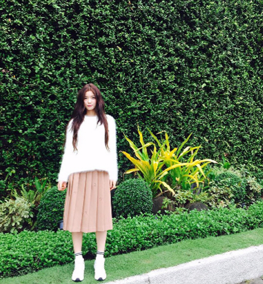 긴 머리를 풀어헤친 김유정은 새하얀 니트 셔츠에 분홍빛 치마를 입고 청순미 넘치는 모습을 뽐냈다.