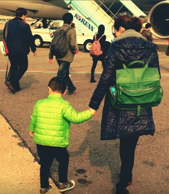 송윤아는 28일 자신의 인스타그램에 "2월은 우리 떠나는거야~~모두들 매일 웃는일만 가득하세요"라는 글과 함께 아들 승윤이와 손을 잡고 비행기에 오르는 뒷모습이 담겼다.