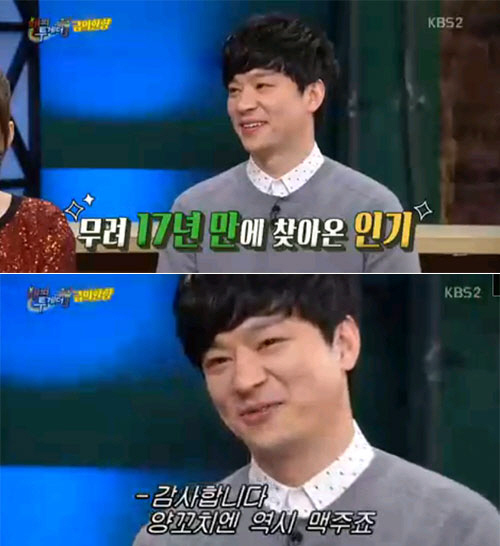 정상훈은 "'양꼬치엔 칭타오' 이후로 개런티가 3배 올랐다"고 밝히는 동시에 "객석 반응도 달라졌다. 무리수를 던져도 많이 웃어주셔서 요즘은 아무거나 던진다"며 여유만만한 모습까지 내비쳐 웃음을 자아냈다.