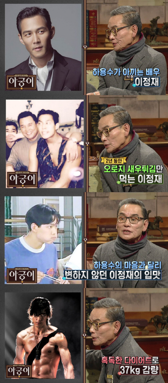 또 하용수는 "이정재가 과거 2년 동안 새우튀김만 먹었다"고 밝혀 스튜디오를 깜짝 놀라게 만들었다. 이유인 즉슨, 과거 이정재의 음식취향 때문. 이어 "제가 스시를 좋아해서 2년 가까이 함께 스시를 먹으러 다녔다. 그런데 2년 동안 이정재는 매번 새우튀김만 먹더라. 어느 날은 그게 너무 화가 나서 '지적인 이미지는 취향에서부터 나온다. 스시도 먹어보고 네 취향이 있어야 한다'고 심하게 혼냈다"면서 새우튀김 때문에 신인 이정재를 나무랐던 당시를 회상했다.
