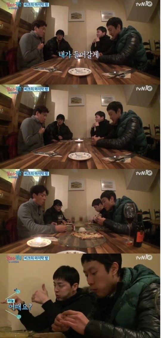 이어 음식을 기다리던 중 먼저 정상훈은 자신의 마이크를 대고 즉석에서 아카펠라를 선보였고, 이에 강하늘도 동참하며 모두의 귀를 즐겁게 했다.