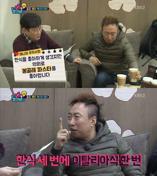 박명수는 이경규에게 새 매니저로 맞아 매니저 주의사항을 알렸다. 박명수는 한식을 세 번 먹으면 이탈리아 음식을 한 번 먹어야 하고, 대본을 보여주지 말 것 등 까다로운 조건들을 제시했다.