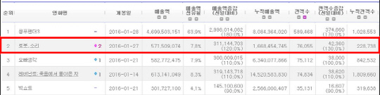 '로봇, 소리'는 '로봇'이라는 독특한 소재에 '부성애'라는 감동적인 스토리가 더해져 관객들의 눈물샘을 자극하고 있다. 거기에 주연 이성민의 연기력이 더해져 관객들의 공감대를 끌어올리며 1월 '가족 무비'로 자리잡았다.