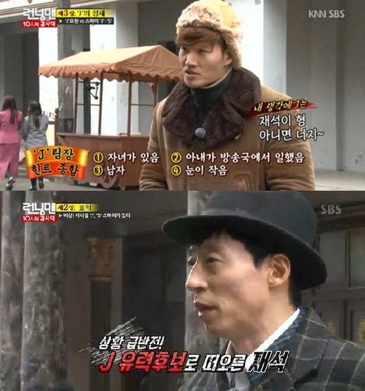 개리, 하하, 김종국 등은 "눈이 정말 작다. 자녀가 있고 아내가 방송국에서 일했으며 잔디 위를 잘 뛰어다닌 다는 것"이라는 J요원의 정체에 대한 정보에 유재석을 지목했고 내부 첩자로 박지성을 가장 의심했다.