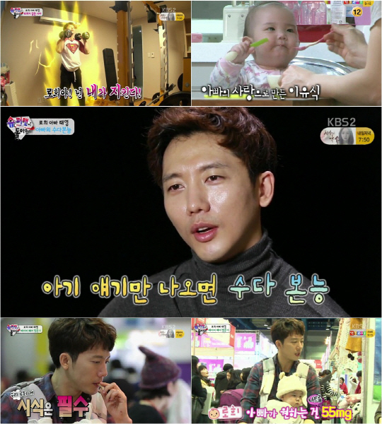 한편 이날 기태영의 딸 사랑은 시청자들에게 먹먹한 감동까지 선사했다. 집으로 돌아온 기태영은 로희 재우기에 돌입했지만 웬일인지 로희가 통 잠을 이루지 못했다. 기태영은 두 시간 넘게 보채는 로희를 품에 안고 집안 곳곳은 누비며 재운 뒤, 다음 날 먹일 이유식 준비를 하고 나서야 겨우 바닥에 등을 댈 수 있었다. 로희 곁에 쓰러져 누워 잠시 쪽 잠을 잔 기태영은 새벽 3시가 돼 다시 자리에서 일어났다. 로희를 보느라 밥 먹는 것 조차 잊어버렸던 것. 주방에 서서 간단하게 끼니를 때우는 기태영의 모습에서 애틋한 딸 사랑이 느껴져 가슴 찡한 감동을 안겼다.