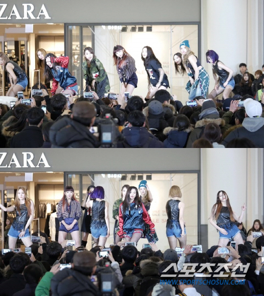 이날 포미닛의 대형 플래시몹 행사를 위해 동원된 엑스트라 참여자만 약 100명. 최근 국내에서 열린 플래시몹 중에서도 손 꼽히는 대형 규모로 압도적 스케일을 자랑한다. 이날 포미닛은 얼굴을 가린 채 야외 무대로 등장, 100여 명의 참가자들과 함께 '핫 이슈' '이름이 뭐예요' '미쳐' 등 자신들의 다양한 히트곡 메들리 무대를 선보이며 시민들의 반응을 즐겼다.