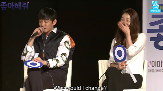 박경림은 유아인에게 다시 질문을 던졌다. 유아인은 담담하게 "이미연과 또 하고 싶다. 안 바꾼다. 왜 바꾸냐"고 말했다. 현장에는 "멋있다"라는 여성 팬들의 반응이 이어졌다.