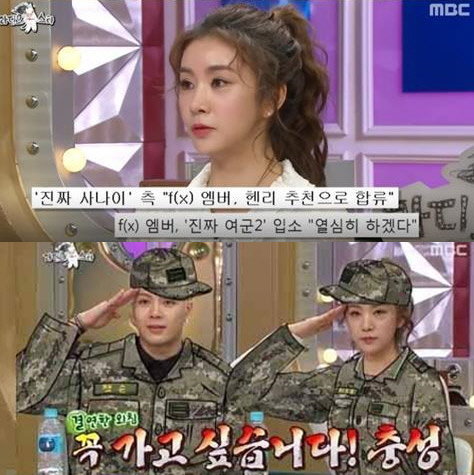 한편 여군 특집에 앞서 조민기, 배수빈, 윤정수, 석주일, 미노, 김민교, 이동준이 출연하는 '꽃중년' 특집이 방송된다.<스포츠조선닷컴>