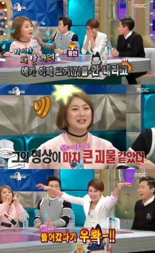 또 박나래는 양세형이 "그 형상이 마치 큰 괴물 같다고 했다"고 강조하자 "다시 한 번 말하지만 '저는 똥 입니다'"고 고백해 스튜디오를 웃음바다로 만들었다. <스포츠조선닷컴>