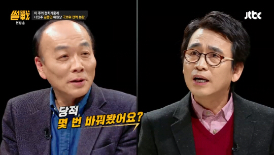 JTBC 이슈 리뷰 토크쇼 썰전'이 패널 유시민 작가와 전원책 변호사의 설전에 힙입어 자체 최고 시청률을 경신했다.