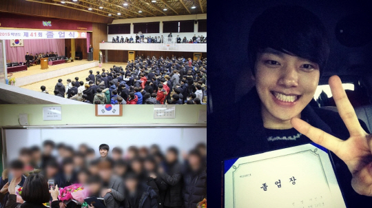 사진에는 친구들과 함께 교실에서 단체로 졸업사진을 찍는 여진구의 모습이 담겨 있다. 또 여진구는 "그래도 아쉬우니까 셀카 한 장"이라는 글과 함께 졸업장을 들고 환한 미소와 함께 브이(V)를 그리며 찍은 사진도 올렸다.