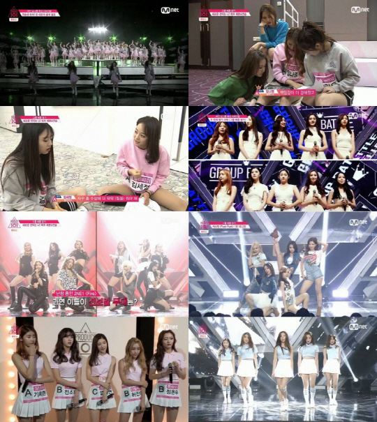 어제 방송에서 연습생들은 'PICK ME(픽미)' 무대에 이어, 4~5명씩 한 그룹을 이뤄 그룹 평가를 받게 됐다. 이전 미션에서 A평가를 받은 연습생들은 자신의 그룹이 선보일 곡과 그룹을 구성할 멤버들을 직접 고를 수 있는 기회를 얻었다. 같은 곡을 선택한 두 그룹이 현장에 모인 국민 프로듀서들 앞에서 공연을 펼쳐 서로 겨루게 되며, 현장 투표로 더 높은 수의 표를 얻은 그룹의 멤버 전원은 지금까지 누적된 국민 프로듀서들의 투표 수에 1,000표를 추가 획득하게 된다.
