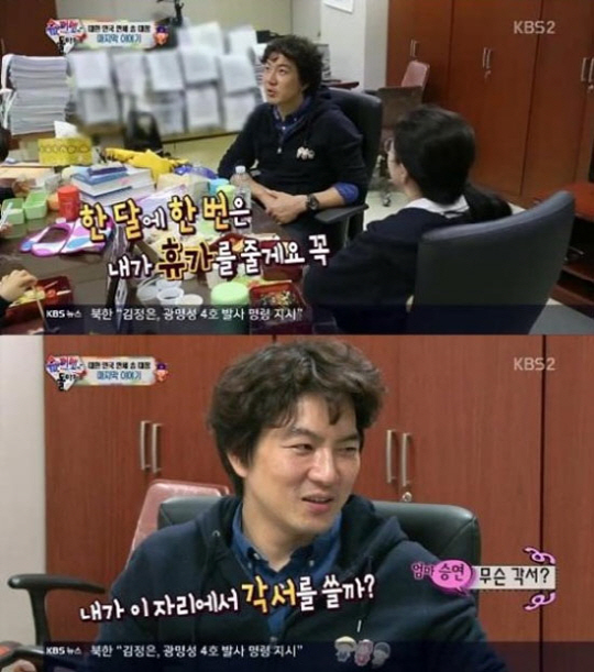 함께 저녁을 먹기 위해 사무실 테이블에 앉은 정 판사는 송일국의 장어덮밥 도시락에 "간이 좀 센거 빼고는 맛있다"라고 평가해 그를 당황시켰다.