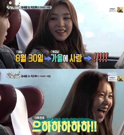 이에 유세윤은 차오루에게 생일을 물었고, 8월 30일이라는 차오루의 대답에 "부모님이 전년도 가을에 사랑하셨네?"라고 말했다. 그러자 차오루는 "아니다. 난 7개월 만에 태어났다"고 설명했다.