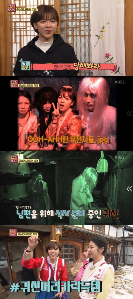 배우 공승연과 그룹 트와이스의 정연이 귀신의 집에서 공포체험을 했다.