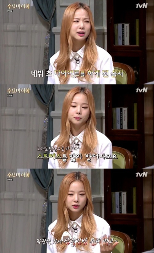솔지는 과거 방송된 tvN '수요미식회'에 출연해 데뷔 초 회사에서 심한 다이어트를 시켜 밥을 제대로 못 먹었다고 전했다.