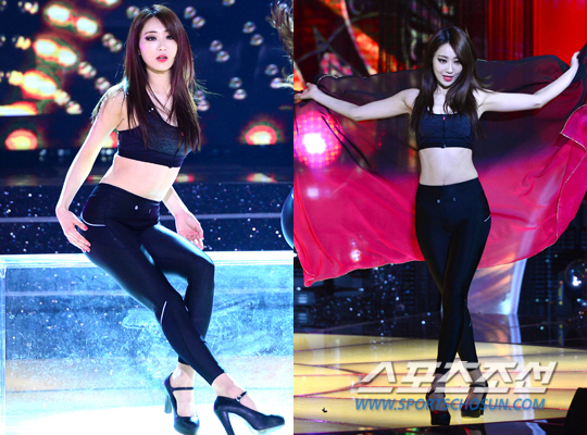 경리는 '황금 비율 트레이닝'을 중심으로 아라비안 나이트 콘셉트로 매혹적인 퍼포먼스를 펼쳤다.