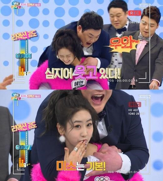 반면 혜연은 김준현을 업어올린 뒤 여유있게 미소까지 지어 좌중을 경악시켰다. 김준현은 연신 감탄을 금치 못했다.
