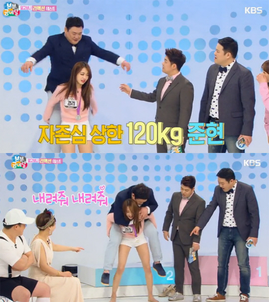 베스티 혜연 역시 김준현 업기 성공하며 출연진들을 경악케 했다. <스포츠조선닷컴>