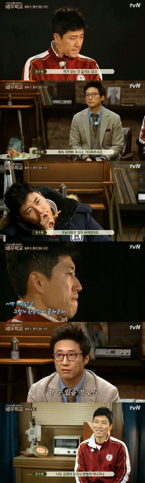 특히 장수원은 '혼자 있는 시간을 표현하라'는 과제를 수행하면서 연기를 제대로 하지 못했다. 그는 "이 과제가 쉽다고 생각했는데, 막상 무대에 올라 해보려고 하니 내 행동이 너무 부자연스럽고 거짓됐다고 느껴지니까 더 이상 연기할 수 없었다"고 털어놨다.