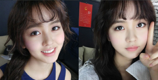 긴 웨이브 헤어스타일을 풀어헤친 김소현은 청순미와 함께 브이 포즈와 함박 미소로 깜찍함을 더했다.