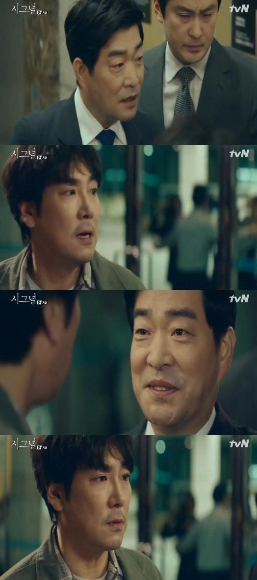 '시그널' 손현주가 첫 등장, 조진웅과 팽팽한 기싸움을 벌였다.
