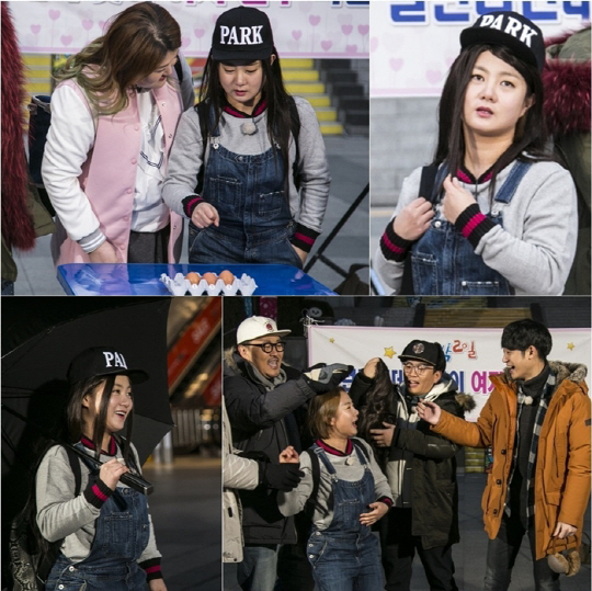 14일 KBS2 '해피선데이-1박2일 시즌3' 공식 페이스북을 통해 공개된 스틸에는 'PARK'이라 적힌 모자를 쓰고 청 멜빵바지를 입은 채 검은 생머리를 휘날리는 박나래의 모습이 담겼다.